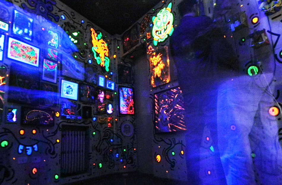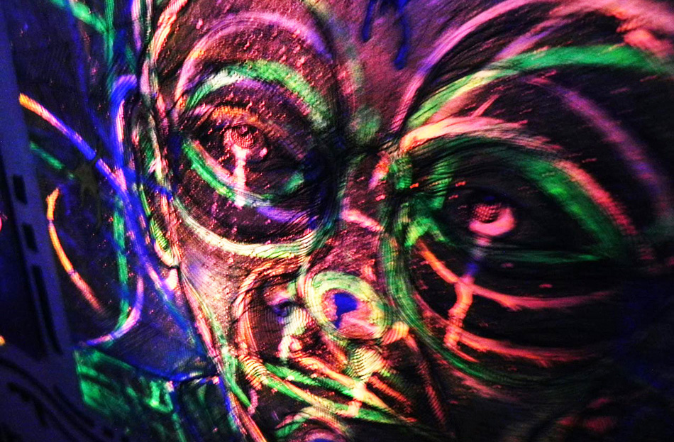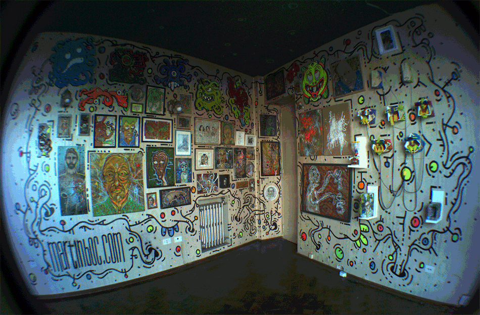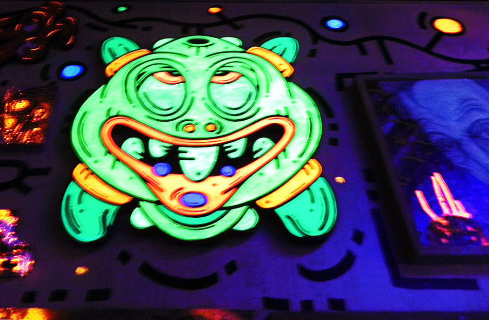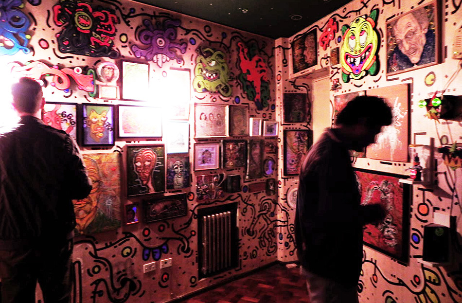 ¿Es street art? ¿Es “arte skater”? Se parece, sí, por las imágenes, a mucho de lo que está pintado afuera, en las inmediaciones, junto a la explanada o en el túnel que baja hasta el río; pero no sólo es más expresivo y elocuente, sino que basta un recorrido por el sitio web de Eduardo Bertone (www.bertoneeduardo.com) para descubrir que este ilustrador freelance y director de arte nacido en 1977 en Rosario, donde se formó como diseñador gráfico, tiene una importante carrera, lo mismo que el grupo, tres de cuyas obras fueron adquiridas el año pasado por el Museo de Arte Contemporáneo de Madrid (Macma).
